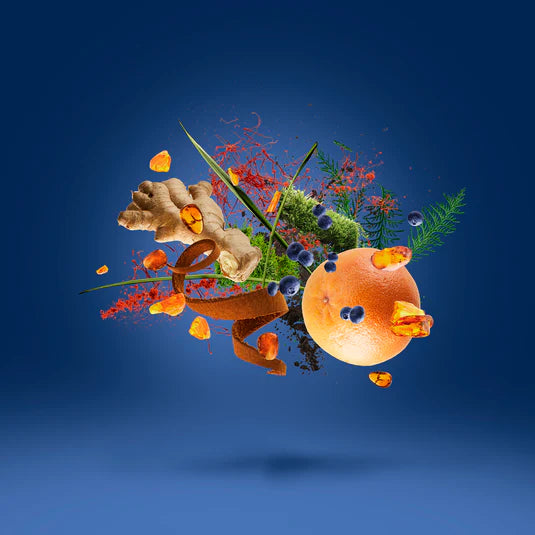 L’apertura è vivace e frizzante, con zafferano e rabarbaro dal carattere giocoso, accesi da pompelmo e zenzero fresco. Il cuore diventa più materico e raffinato: cuoio e ginepro si intrecciano con un suede morbido, creando una sensazione elegante e vellutata sulla pelle. Nel fondo, ambra, muschio e vetiver chiudono con profondità e persistenza, lasciando una firma pulita, calda e distintiva.